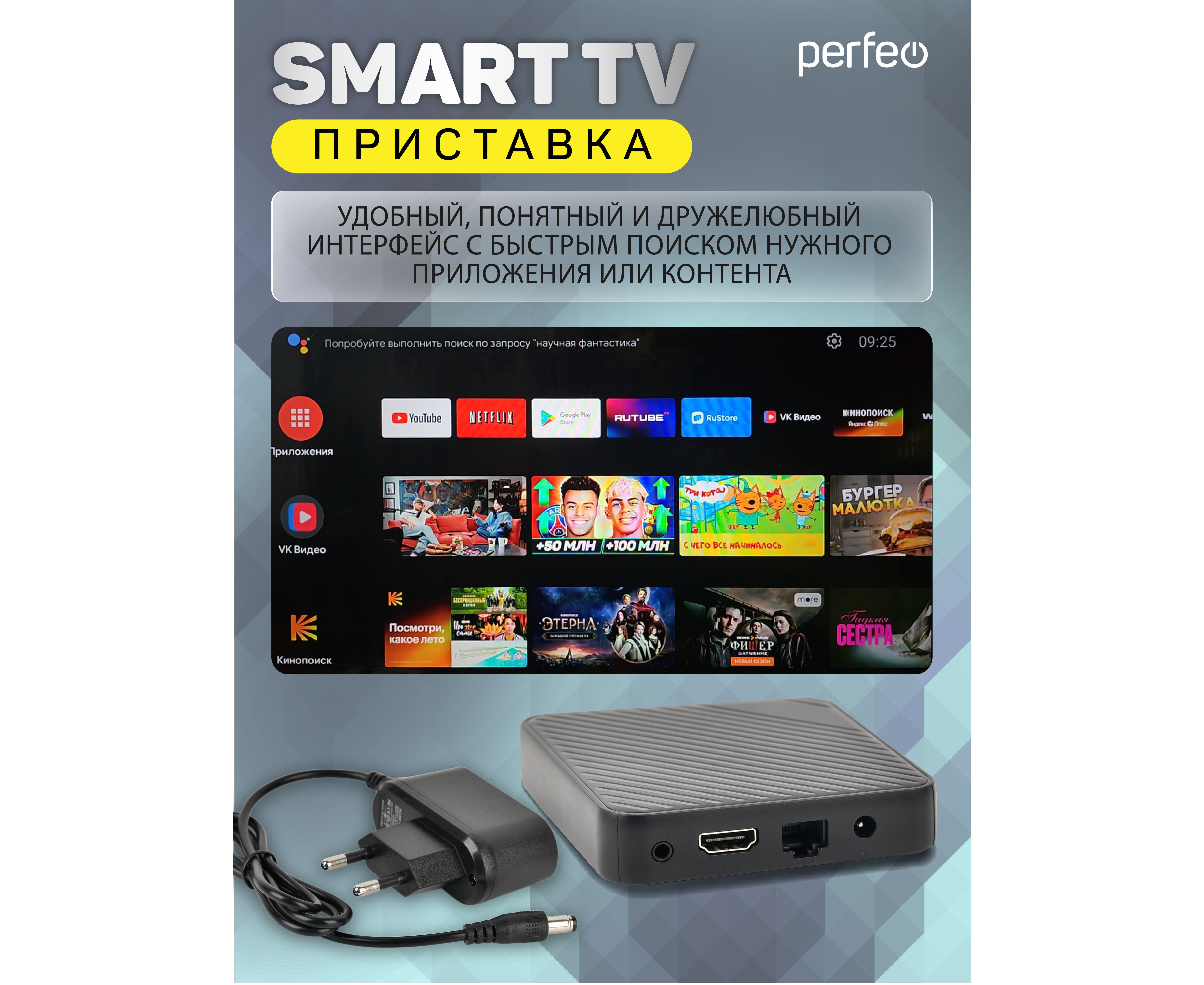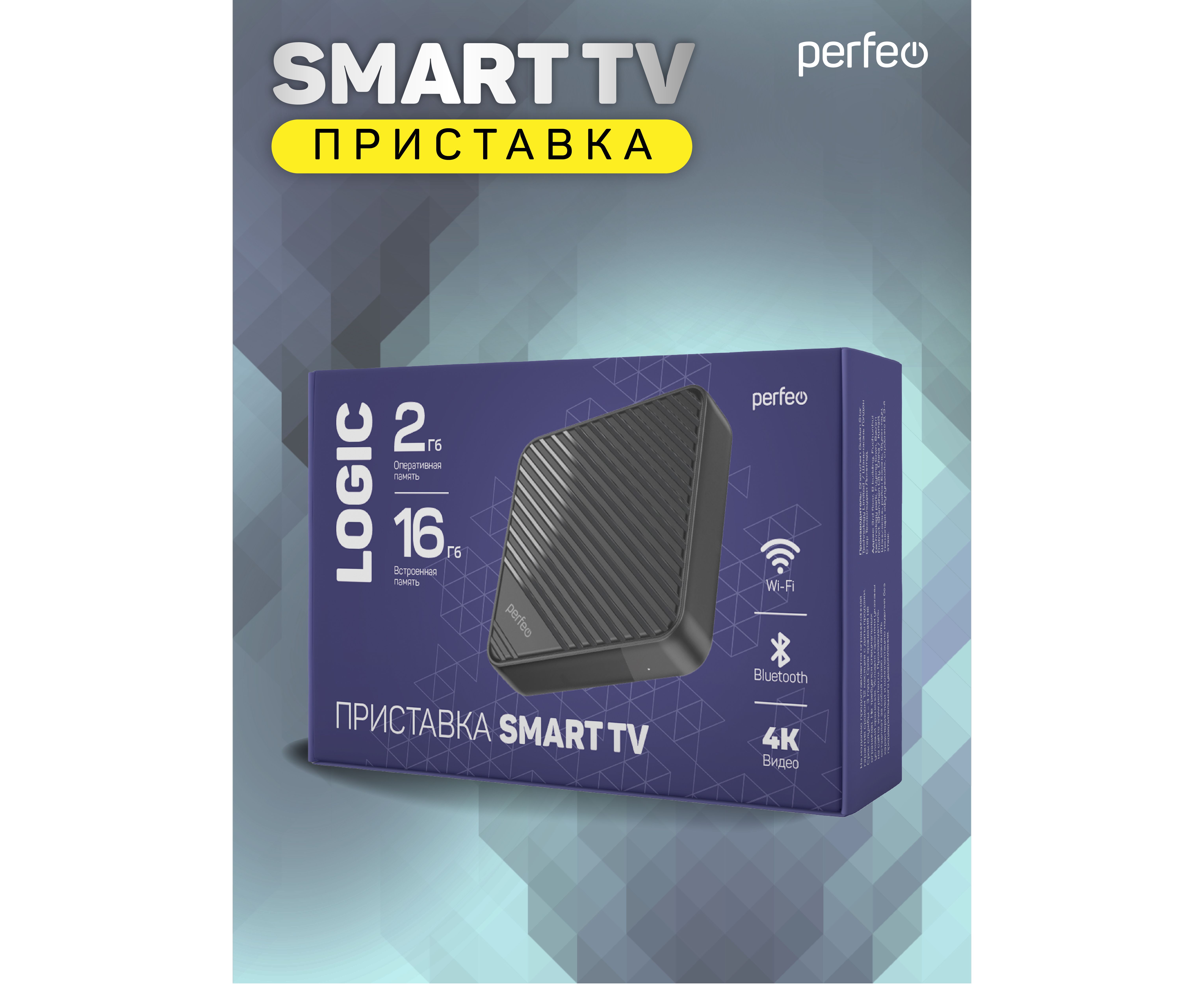 Приставка Perfeo SMART TV BOX "LOGIC 2/16", Allwinner H313, Android 10, 2Gb/16Gb, Пульт Bluetooth, (Арт. PF_A4555-C)