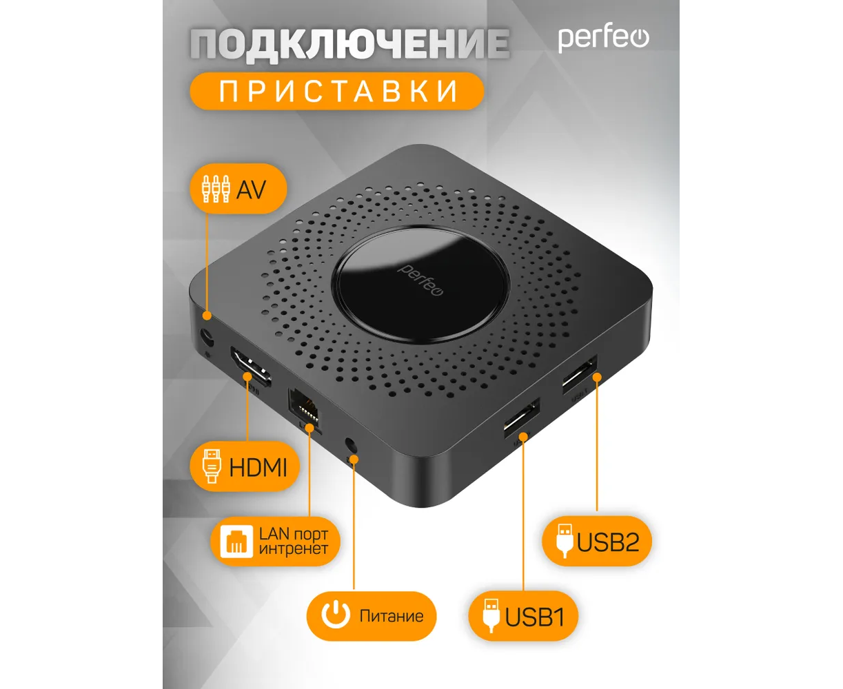 Приставка Perfeo SMART TV BOX "VISION 2/8", Allwinner H618, Android 12, 2Gb/8Gb, Пульт Bluetooth, (Арт. PF_A4559-C)
