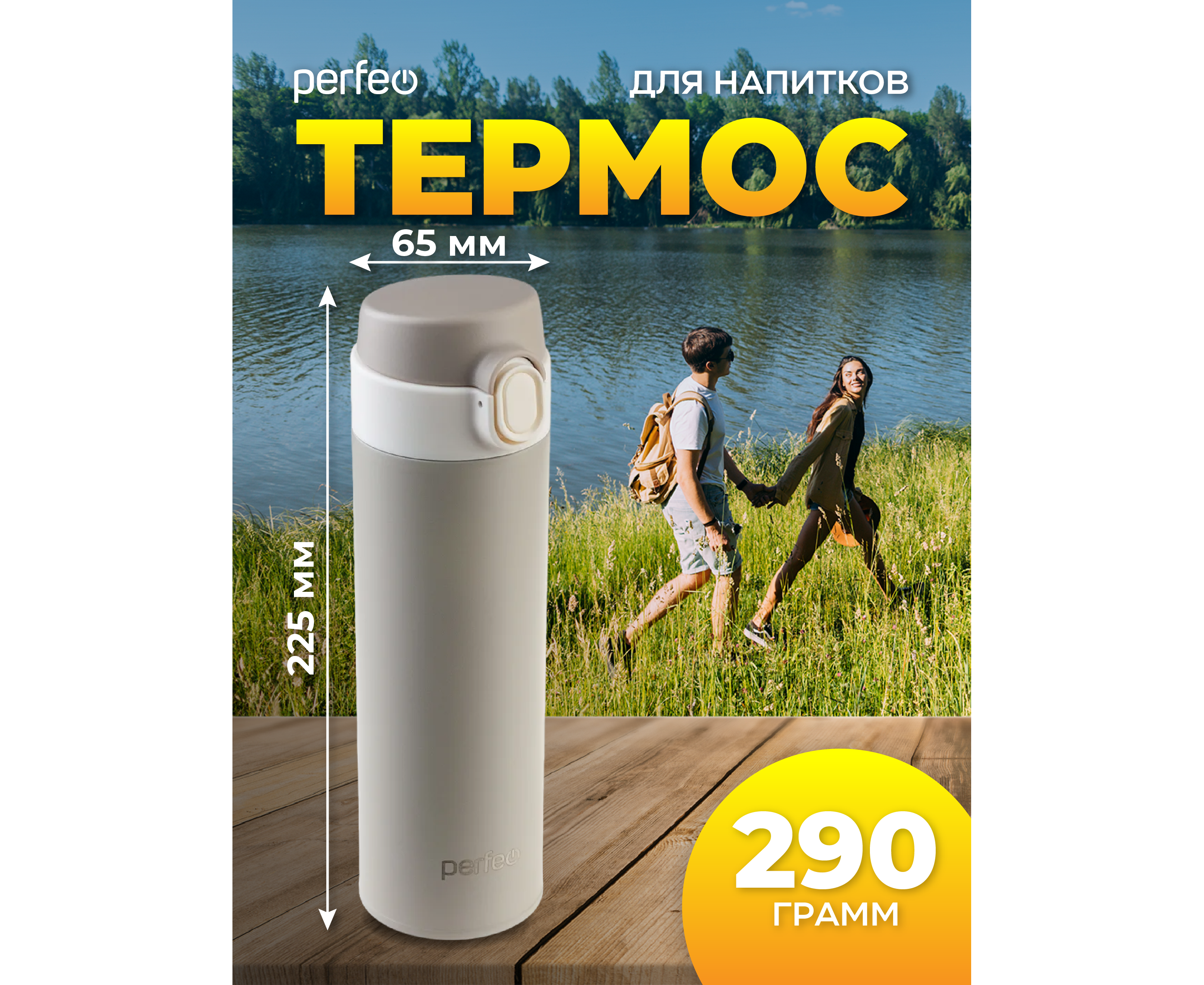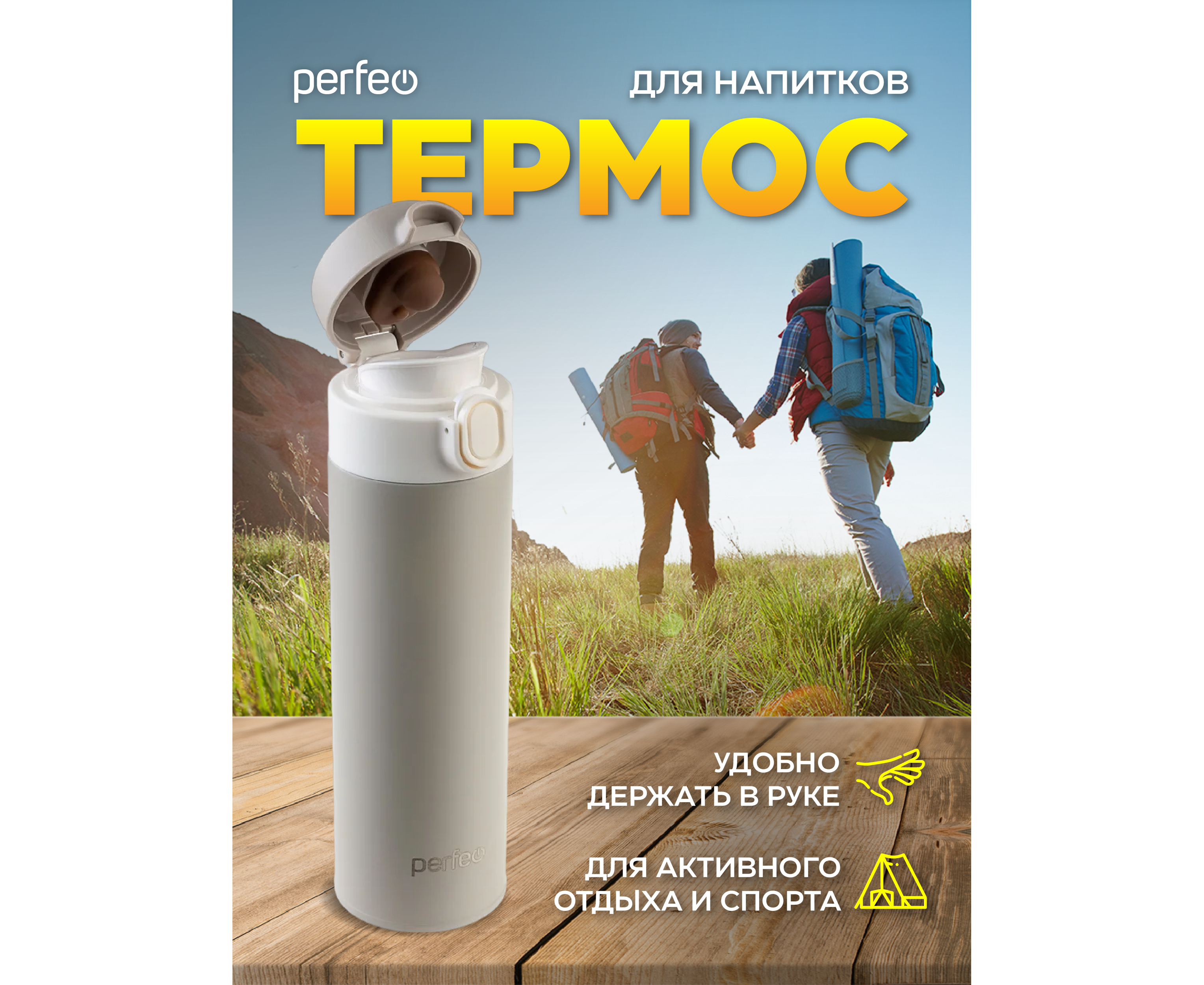 Термос для напитков PERFEO с крышкой-поилкой, объем 0,5 л., серый, (Арт. PF_D0208)
