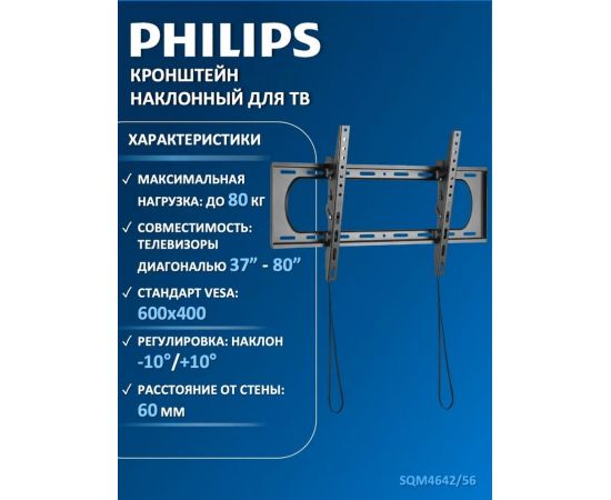 Кронштейн для ТВ 37"-80", Max 80кг, расстояние от стены 60мм