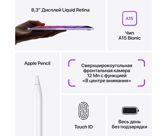 Планшет Apple iPad mini 2021 A2568 MLX93ZP/A A15 Bionic 6С ROM256Gb 8.3" IPS 2266x1488 3G 4G iOS розовый 12Mpix 12Mpix BT GPS WiFi Touch 9hr
