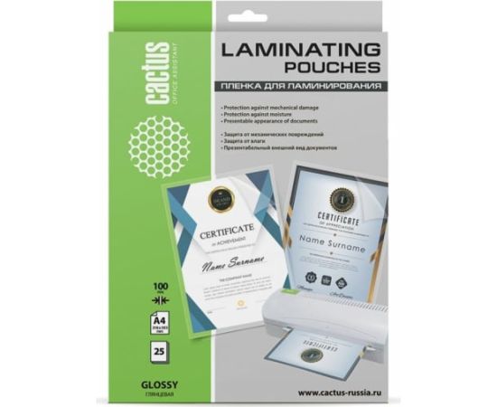 Пленка для ламинирования Cactus CS-LPGA410025 100мкм A4 25шт глянцевая 216x303мм