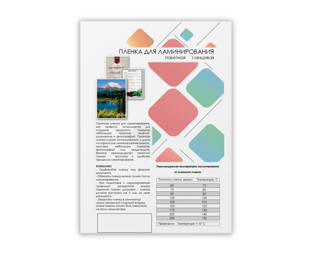 Назначение: Для ламинирования
