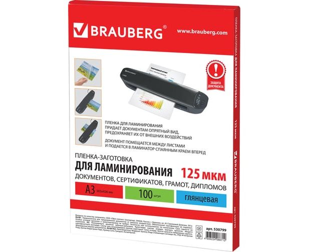 Пленки-заготовки для ламинирования BRAUBERG 530799 А3 125мкм 100шт