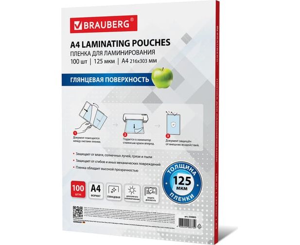 Пленки-заготовки для ламинирования BRAUBERG 530803 А4 125мкм 100шт