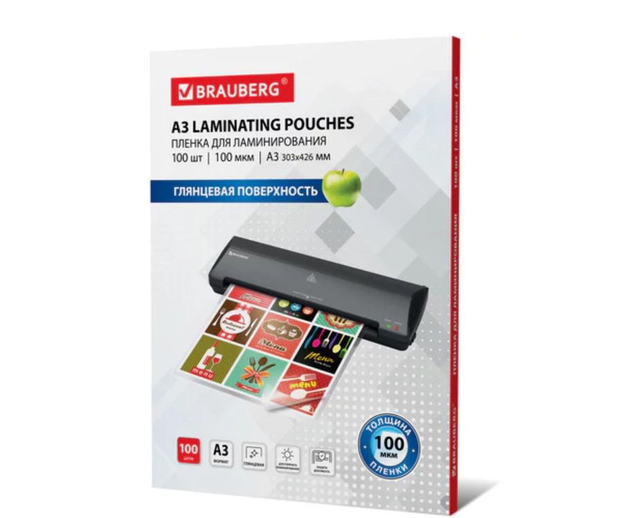 Пленки-заготовки для ламинирования BRAUBERG 530895 А3 100мкм 100шт