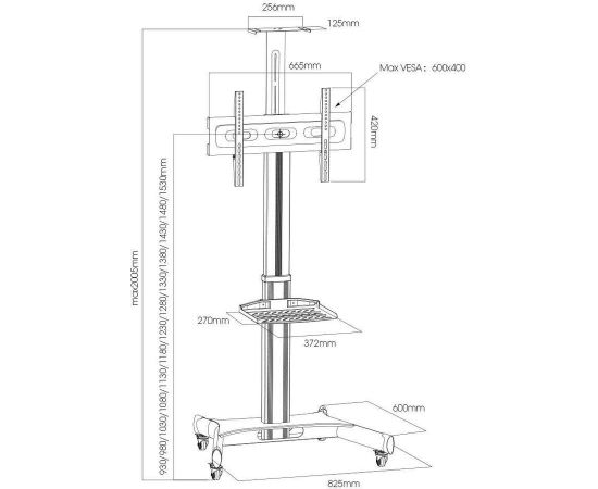 Поддержка крепления VESA 100×100, 200×100, 200×200, 200×300, 300×200, 400×200, 300×300, 400×300, 400×400, 600×400