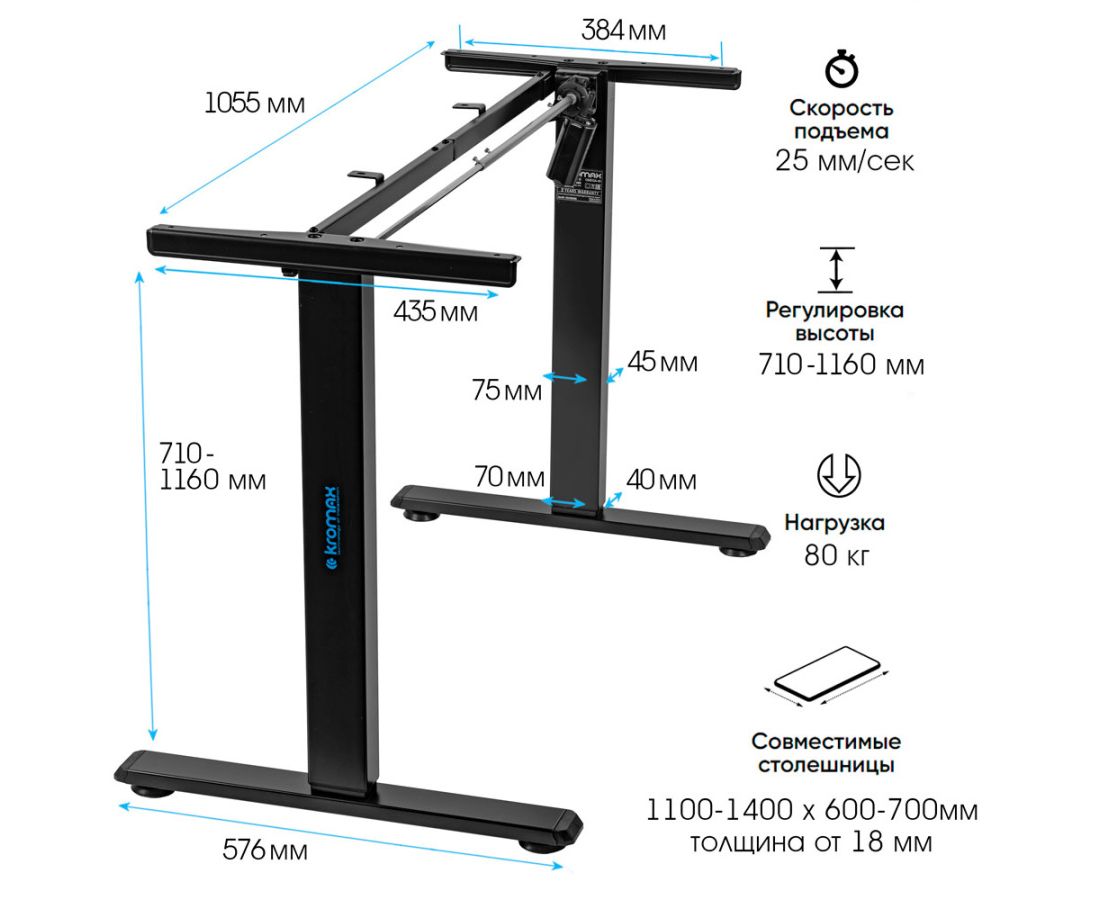 Подстолье Kromax Omega-40 black электрическое для TV, max выс. 710-1160мм, max вес 80кг