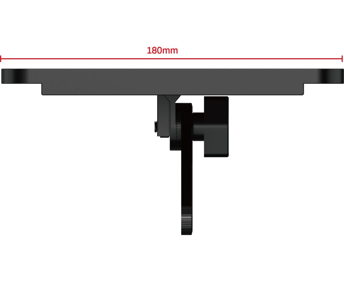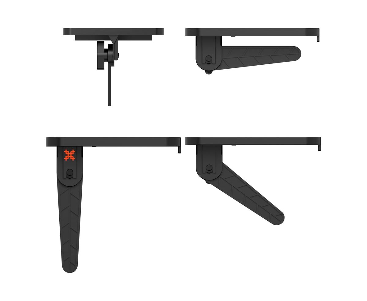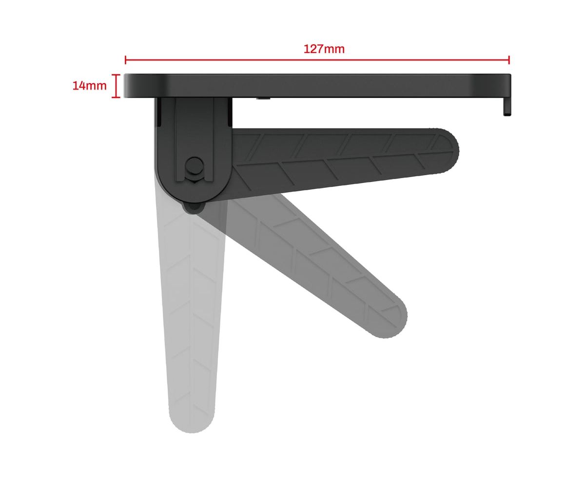 Кронштейн-полка оснащен лапками с изменяем углом установки, которые регулируются в зависимости от толщины ТВ или монитора и фиксируются удобными барашками.