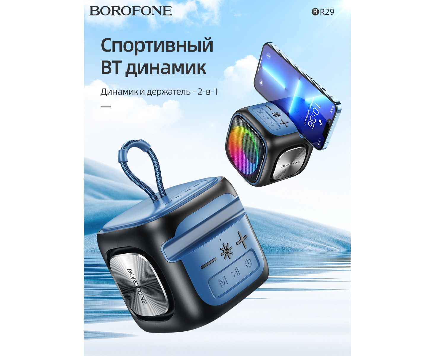 Колонка Borofone BR29 Interest sports Colorful LED BT Блютуз 1200mAh