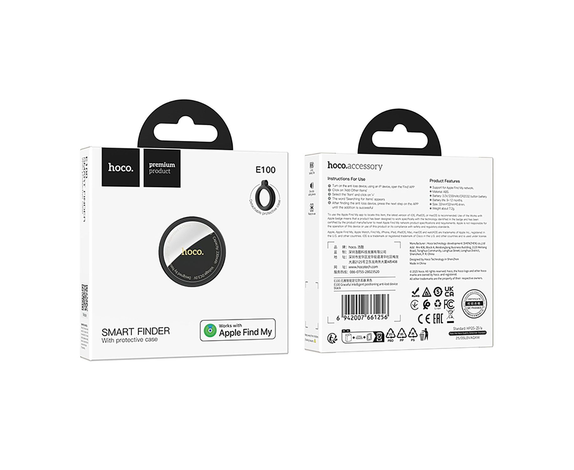 Портативный GPS трекер Hoco E100 Graceful (black) (240942)
