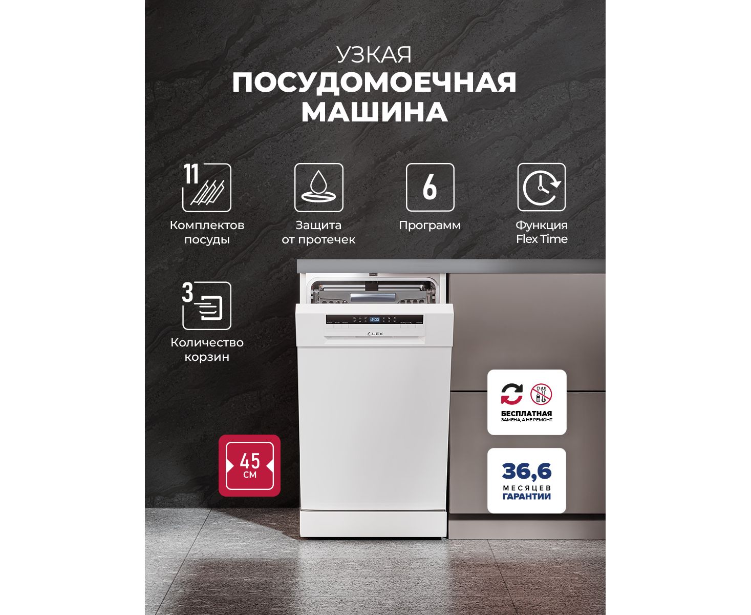 Посудомоечная машина Lex DW4563N WH белый