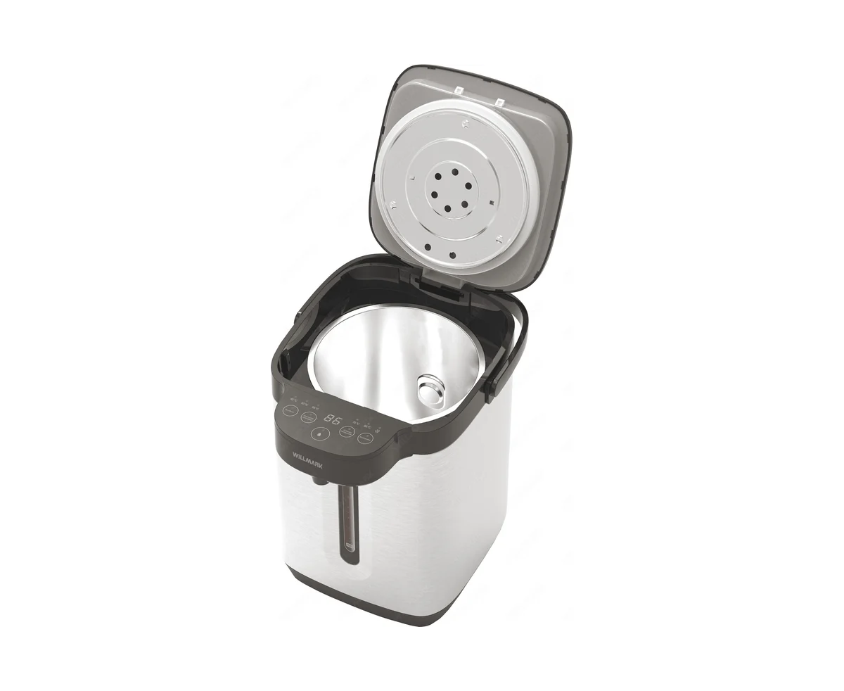 Поттер WILLMARK WAP-609G — отличный помощник на кухне, сочетает в себе функции электрочайника и термоса. Имеет стильный внешний вид и минималистичный дизайн. Термопот служит для подачи воды заданной температуры и поддержания температуры воды с помощью периодического включения и отключения нагрева. Дисплей проинформирует о заданных параметрах. Термопот оснащен функцией выбора температуры и может не только вскипятить, но и нагреть воду до температуры 45, 55, 65, 75, 85 и 95 °С, что очень удобно при заваривании различных сортов чая. Поттер WILLMARK -стильное и надежное приобретение для Вашего дома!
