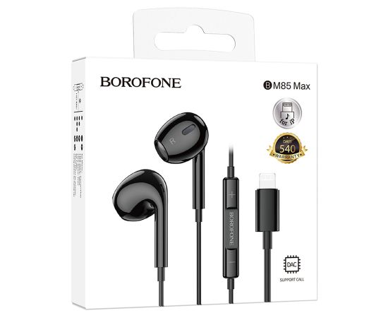 Проводные наушники BOROFONE BM85 Max Native, Lightning, 1.2 м, черный