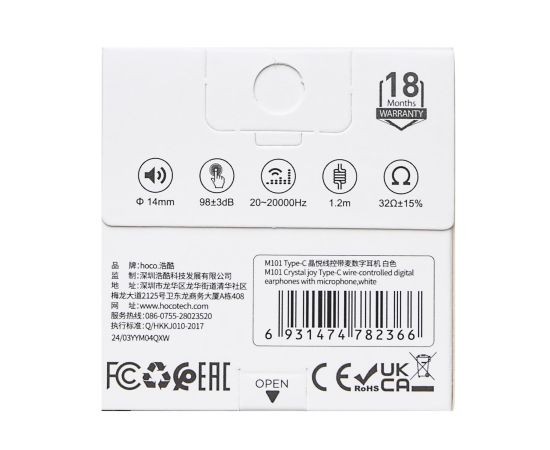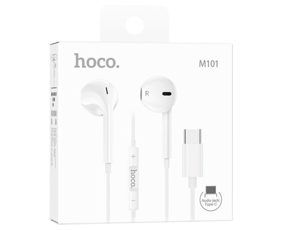 Проводные наушники с микрофоном вкладыши Hoco M101 Crystal joy Type-C (iP15) (белый) (235078)