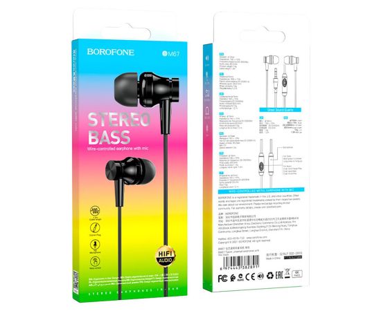 Проводные наушники с микрофоном внутриканальные Borofone BM67 Jack 3,5 (black) (217932)