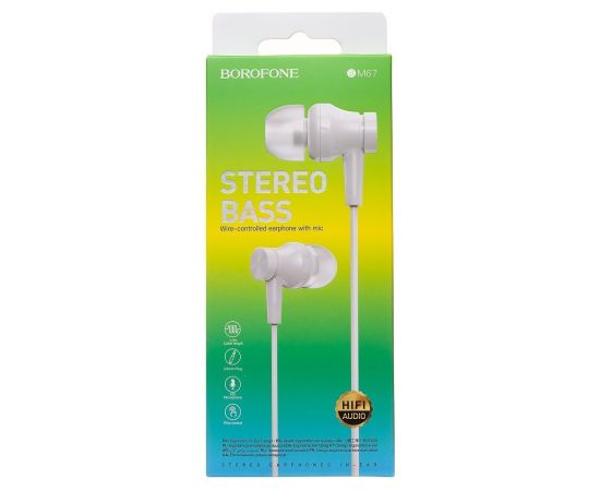 Проводные наушники с микрофоном внутриканальные Borofone BM67 Jack 3,5 (white) (217933)