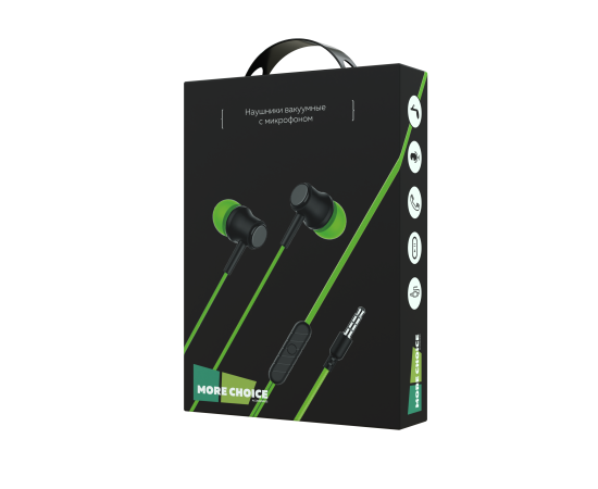PURE Наушники вакуумные AUX разъём с МК без рег.громкости длина 1.2м More choice G16 (Green)