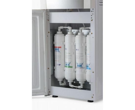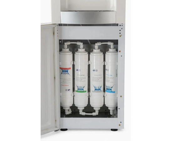 Напольный пурифайер с компрессорным охлаждением. 4-х уровневая система очистки с ультрафильтрационной мембраной (UF) обеспечивает безупречное качество горячей и холодной питьевой воды. Удобные и красивые краники нажим чашкой. Бак нагрева: 1,0л (нержавеющая сталь). Бак охлаждения: 3,6л