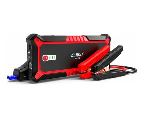 Портативное пуско-зарядное устройство CARKU 17000 mAh jump starter Pro-30 предназначено для запуска двигателей транспортных средств объёмом до 8 литров (бензин) и до 5 литров (дизель). Кроме этого может использоваться для зарядки и питания телефонов, планшетов и прочей электроники. Для этого на корпусе предусмотрены три USB-выхода: USB Type-C 15W, USB QuickCharge, USВ 5В/2,4А. Данная модель так же подходит для питания различных автоприборов, работающих от напряжения 12 В через переходник прикуривателя.