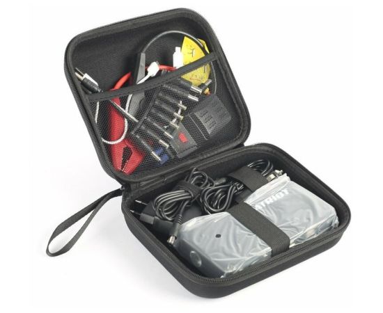 комплектация: сетевой адаптер, адаптер зарядки от прикуривателя автомобиля, кабель и разъемы для ноутбуков, силовые зажимы для подключения к автомобильному аккумулятору с защитой, адаптер для телефонов, кейс для хранения и транспортировки