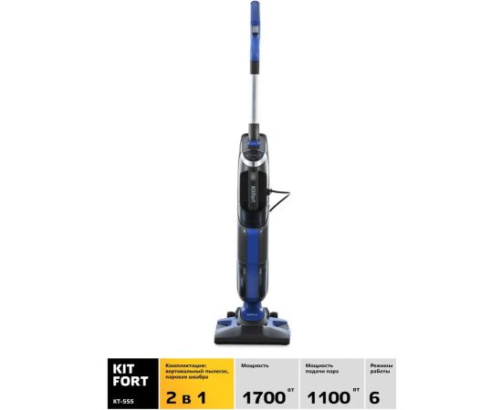 Описание Вертикальный пылесос Kitfort KT-555 с функциями паровой швабры и ручного пароочистителя удобен при локальной и генеральной уборке. Он всасывает пыль и мелкий мусор, а затем очищает поверхность от грязи, въевшихся пятен и жира при помощи горячего пара.