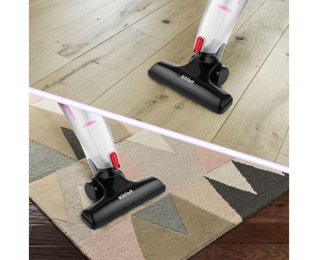 Вертикальный пылесос Kitfort КТ-597 удобен для уборки различных поверхностей: линолеум, паркет, ламинат, ковёр, ковровые покрытия, плитка, мрамор и т.д. Он компактный и лёгкий. Шнур длиной 5 м позволяет убирать на большом расстоянии от розеток.