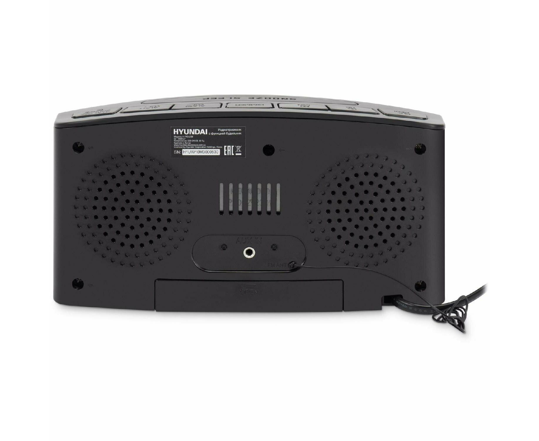 Радиобудильник Hyundai H-RCL238 черный, подсветка зеленая