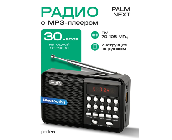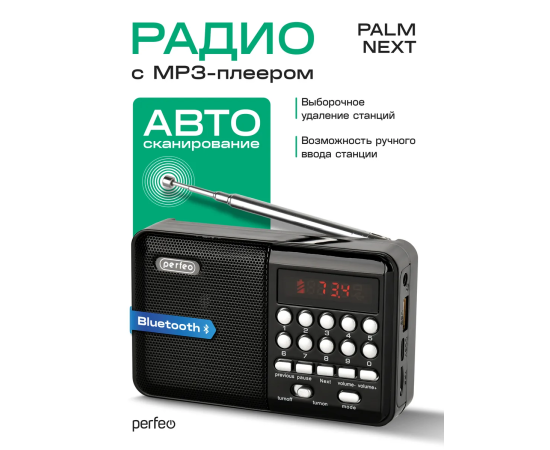 Радиоприемник цифровой Perfeo PALM FM+ 87.5-108МГц/ MP3 / USB / MicroSD