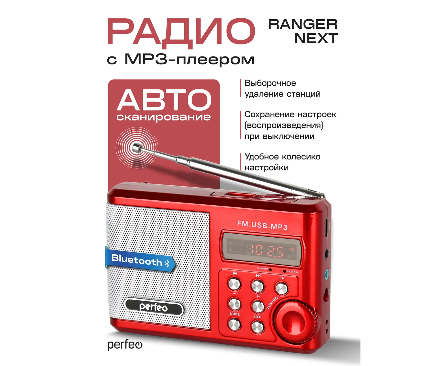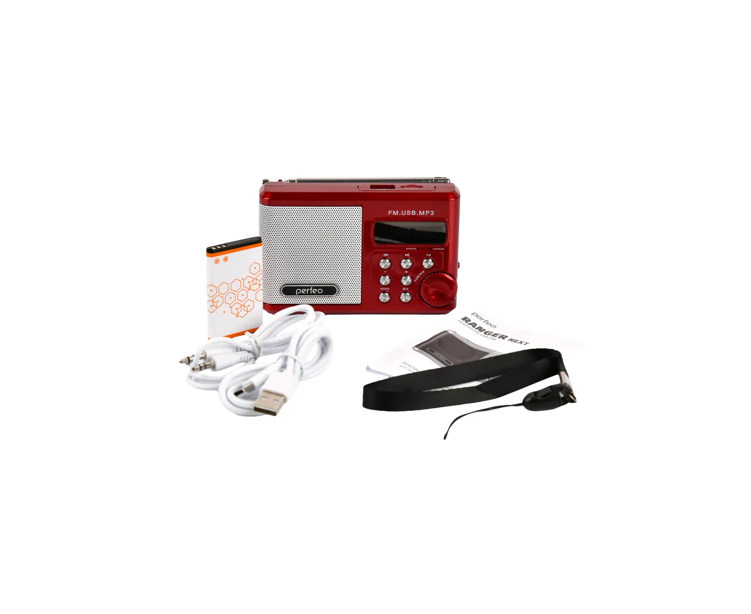 Радиоприемник Bluetooth цифровой Perfeo Sound Ranger Next/ УКВ+FM/ MP3/ Bluetooth 5.3/ 1000 mAh/ Красный, (Арт. PF_D0563)