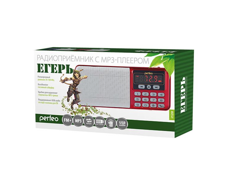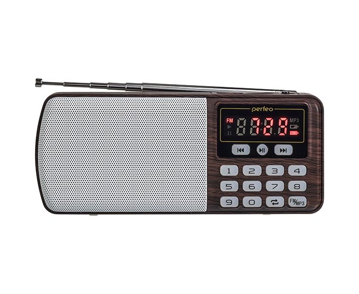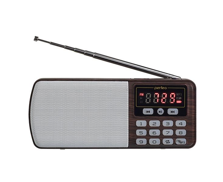 Радиоприемник Perfeo i120 ЕГЕРЬ с модернизированным радиоблоком и телескопической антенной. С точной цифровой настройкой на станции и шикарным «сочным» звуком воспроизводит MP3-файлы с карт памяти и USB-флэшек. Долгое нажатие на кнопку FM запустит автопоиск радиостанций, а с помощью цифровых кнопок легко задать нужную частоту вручную (1-0-6-2 -> 106.2).
