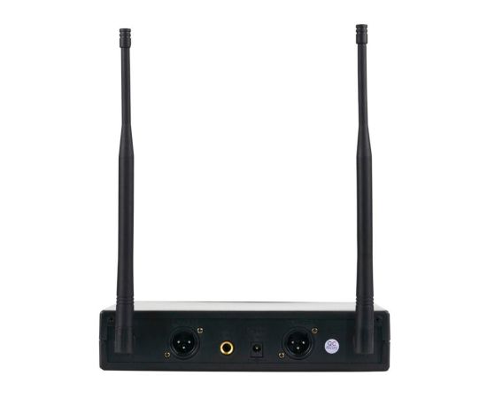 Устройство состоит из двух компонентов: передатчика и приемника. Передатчик имеет удобный и компактный дизайн, который позволяет легко переносить его с собой. В комплекте поставляются два ручных радиомикрофона, идеальные для использования с вокалом, любыми выступлениями и различными инструментами. Приемник имеет удобный дисплей, который показывает текущую частоту и уровень сигнала.