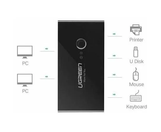Разветвитель UGREEN US216 30768 2 In 4 Out USB 3.0 Sharing Switch Box Black