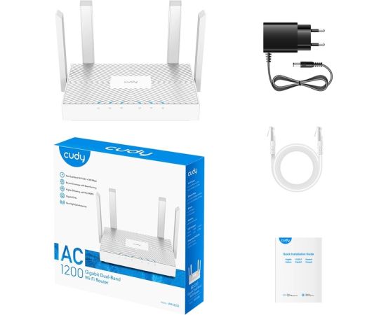 Комплектация: АС1200 WiFi роутер, адаптер питания, RJ45 Ethernet кабель, руководство быстрой установки