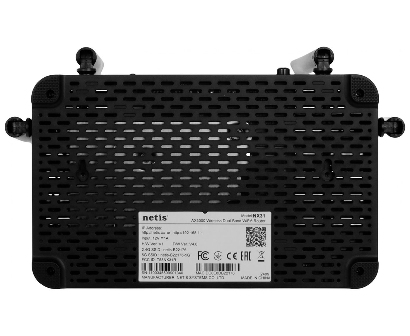 Роутер беспроводной Netis NX31 AX3000 10/100/1000BASE-TX черный