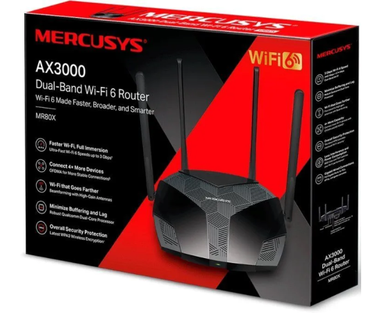 Роутер Mercusys MR80X AX3000 10/100/1000BASE-TX черный