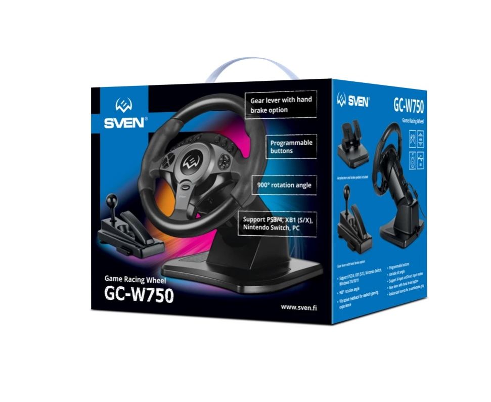 Руль SVEN GC-W750 SV-021436 (педали, вибро, D-pad, 16 кл, PS4/PS3//XB1/NS/PC/X-D-Input)