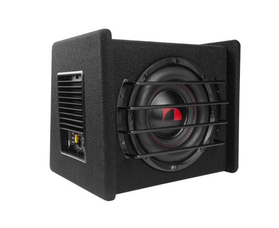NBX251A - корпус из МДФ, динамик 10", усилитель мощностью 150 Вт, ФНЧ 40 - 160 Гц, Фазовращатель 0 - 180°, фиксированный подтональный фильтр (сабсоник) 20 Гц, входы RCA, выносной регулятор усиления в комплекте. Отделка- черный карпет с фирменным логотипом. Металлический гриль.