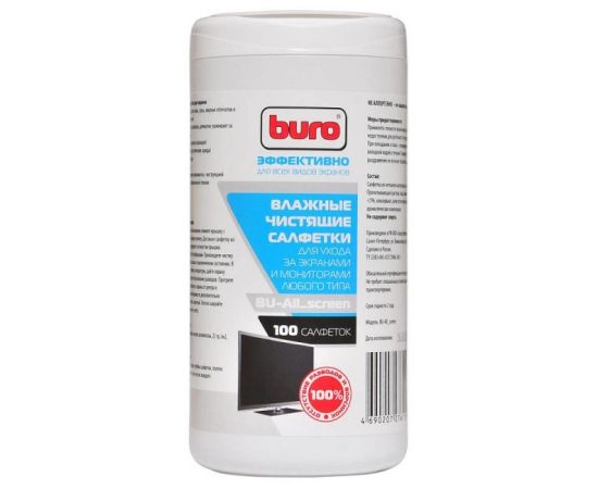 Салфетки Buro BU-All_screen для экранов мониторов/плазменных/ЖК телевизоров/ноутбуков туба 100шт влажных