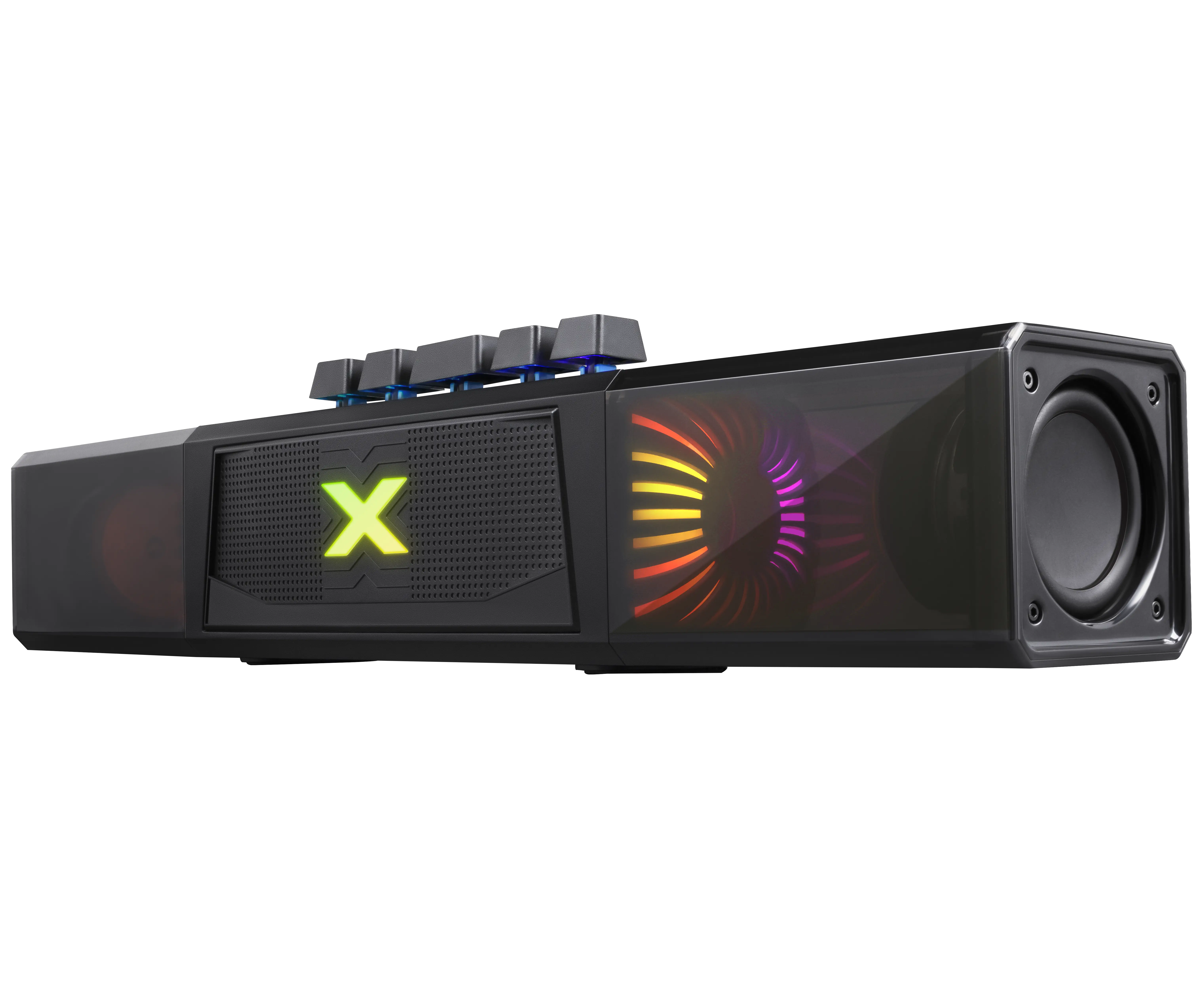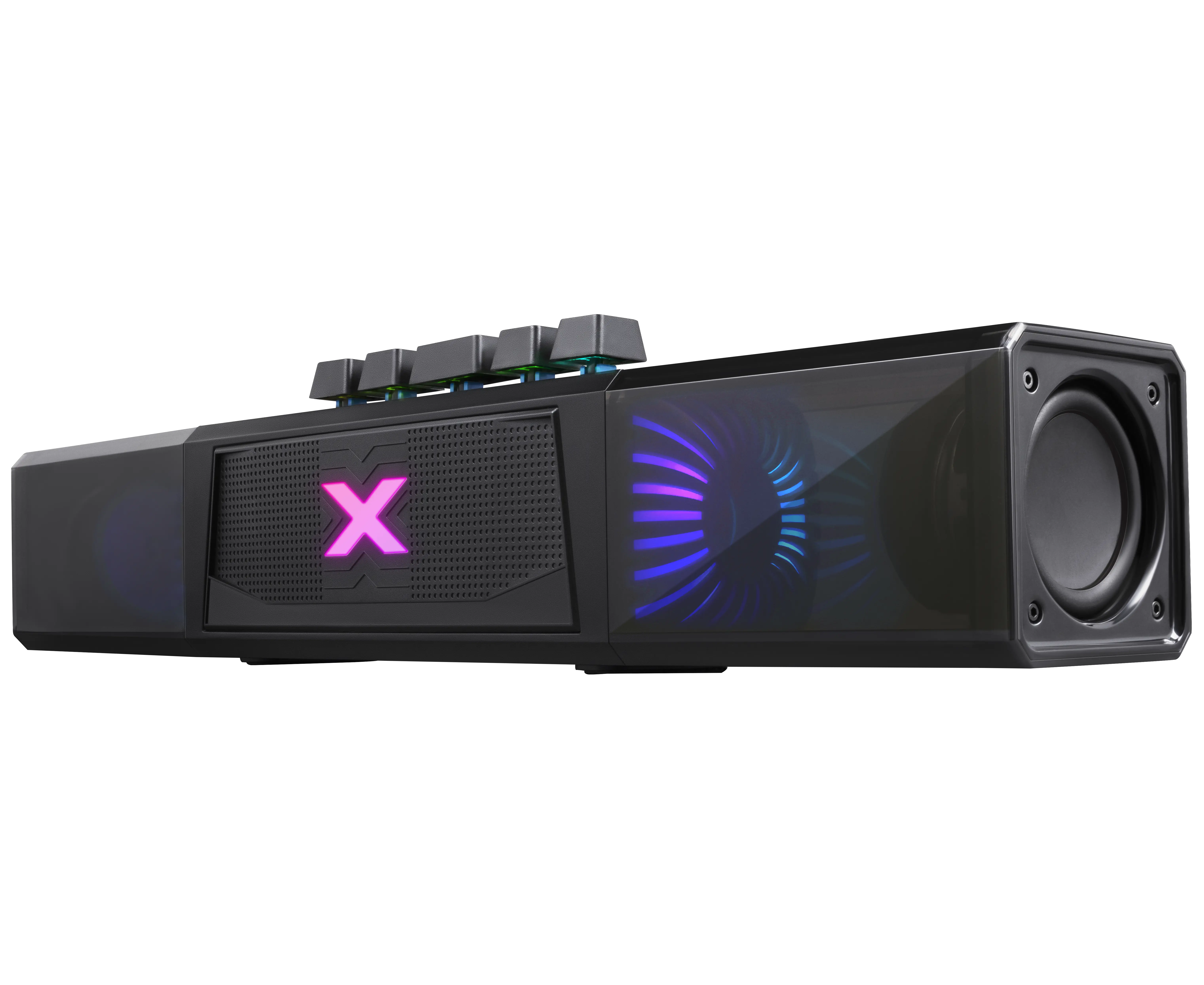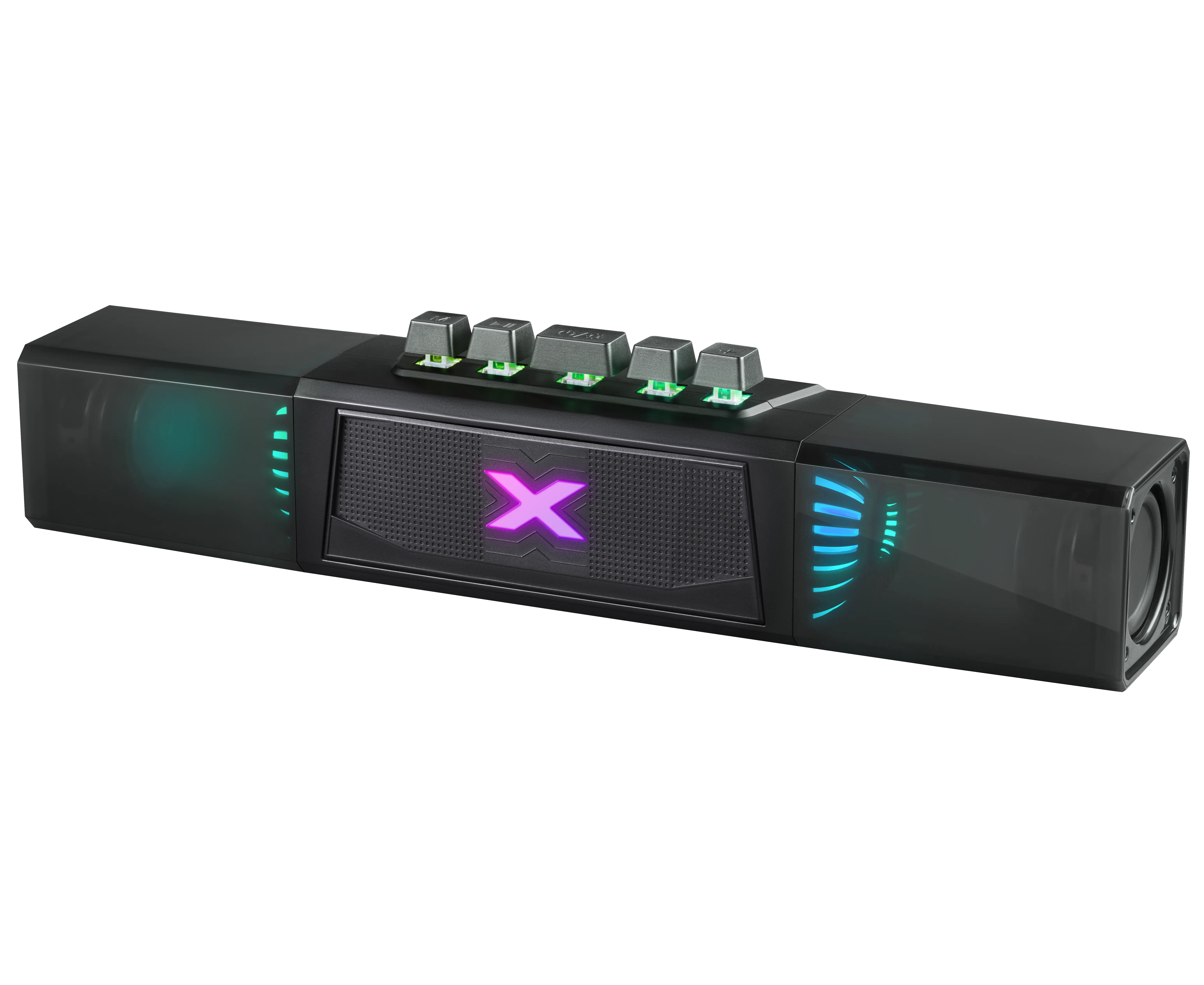 Портативная колонка-саундбар с функцией Bluetooth. Универсальное устройство подходит для ПК, телевизора и для использования вне дома. Встроенный аккумулятор ёмкостью 2400 мАч позволяет использовать динамик без привязки к источнику питания. Красивая подсветка, потрясающее качество звука для ваших любимых фильмов и музыки дома или в путешествии.