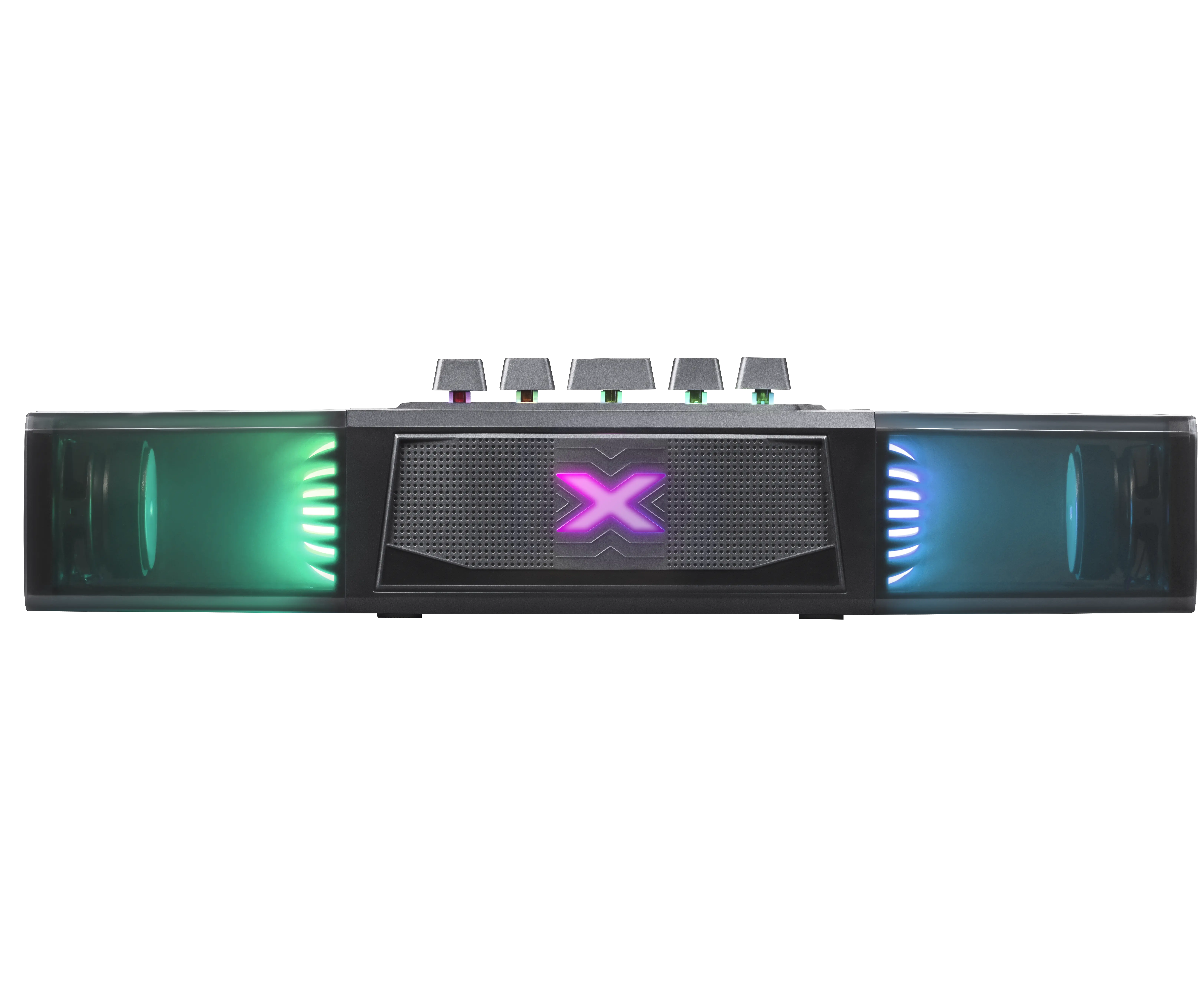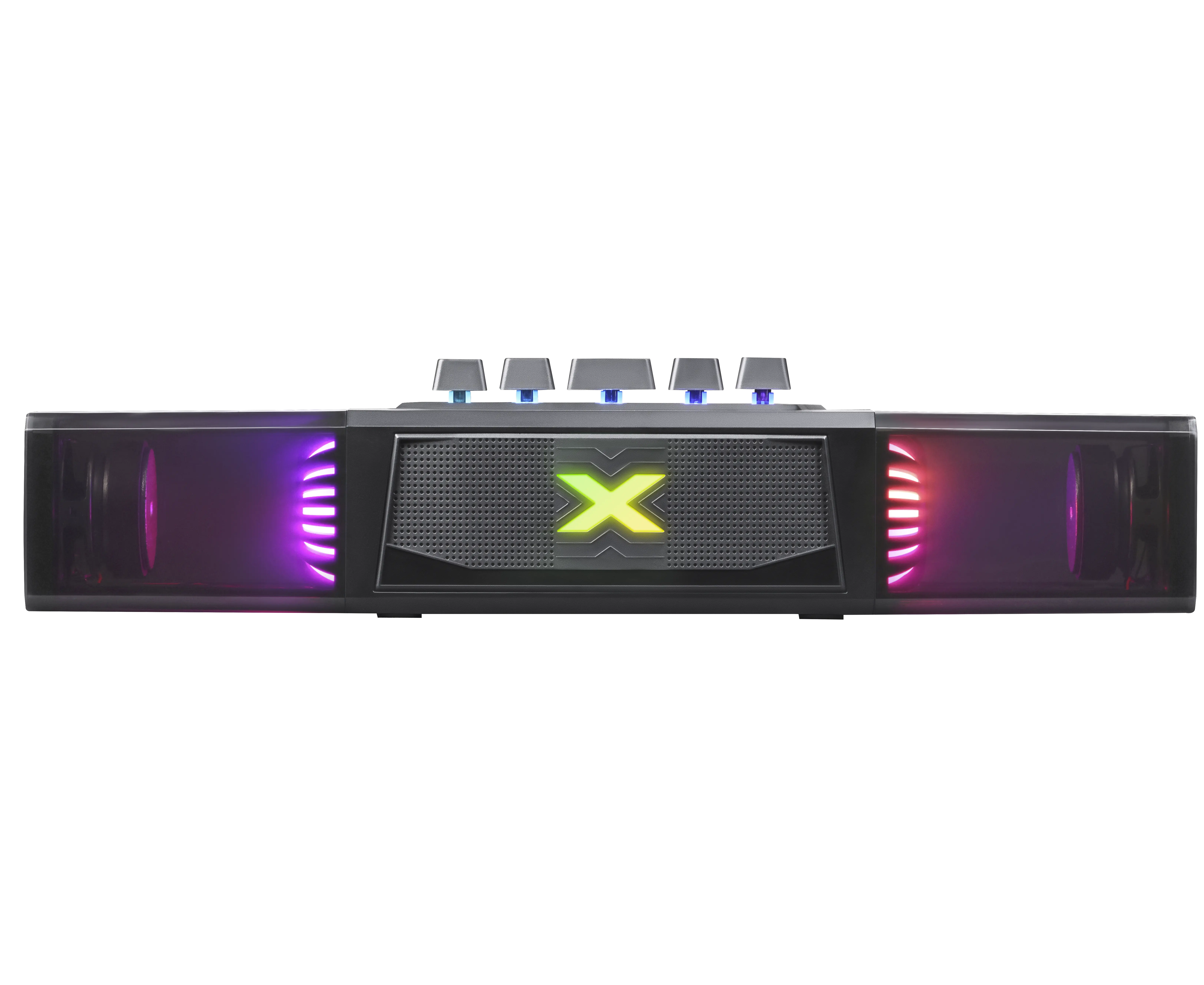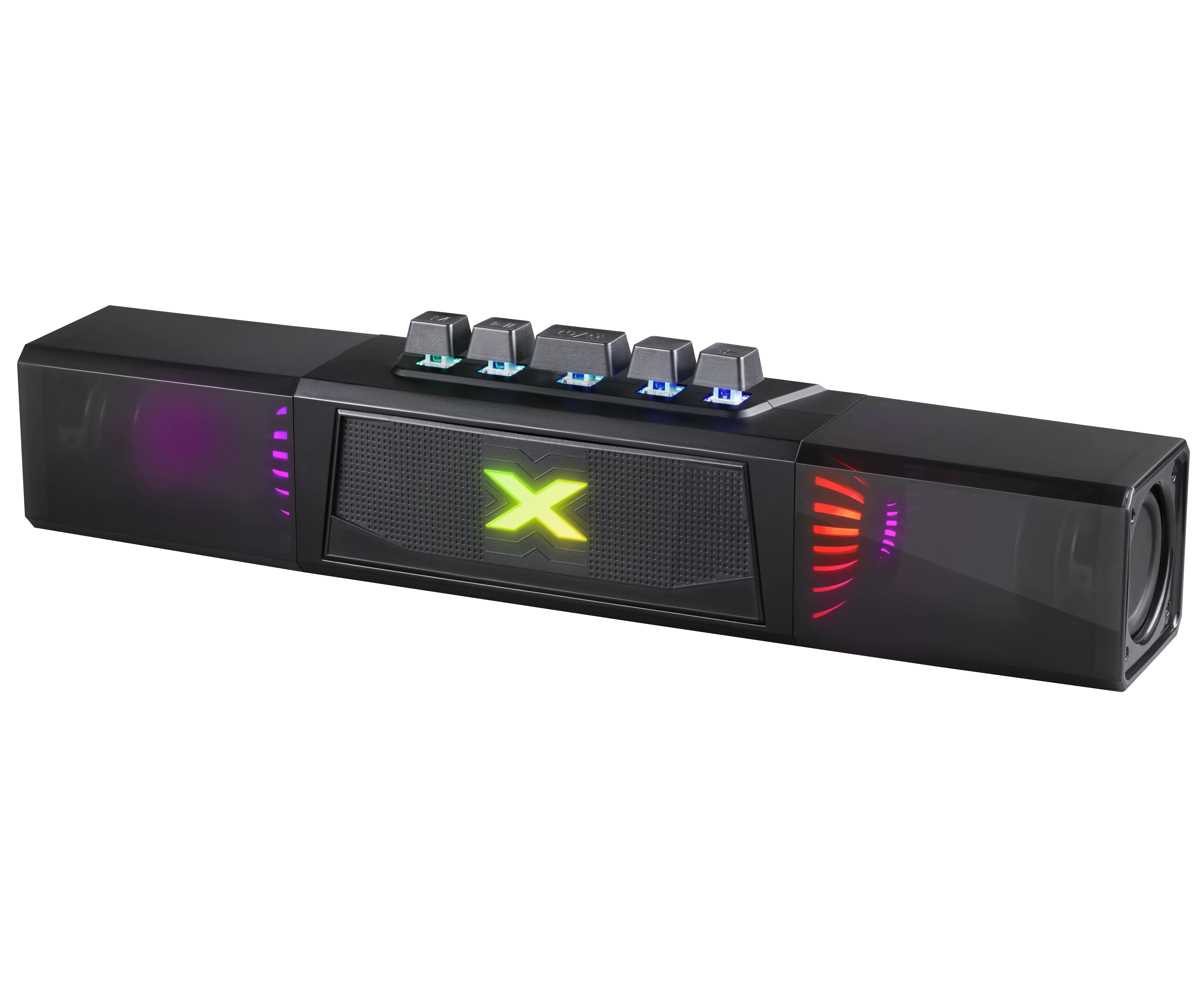 Портативная колонка-саундбар с функцией Bluetooth. Универсальное устройство подходит для ПК, телевизора и для использования вне дома. Встроенный аккумулятор ёмкостью 2400 мАч позволяет использовать динамик без привязки к источнику питания. Красивая подсветка, потрясающее качество звука для ваших любимых фильмов и музыки дома или в путешествии.
