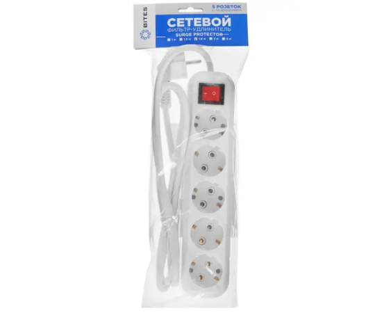 Сетевой фильтр 5bites SP5W-318 5S/3*1.5mm2/16A/ABS/1.8M/White