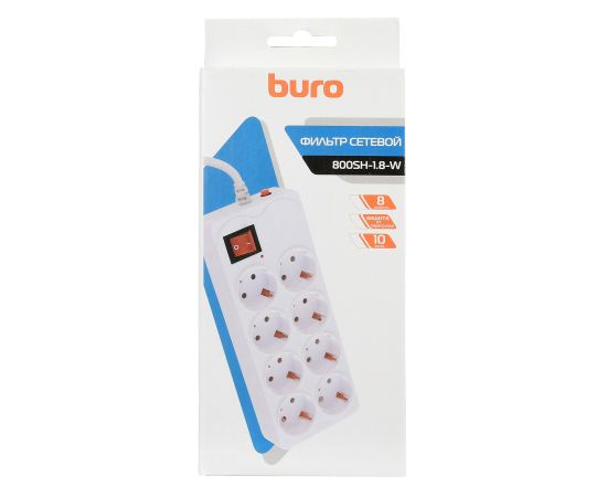 Сетевой фильтр Buro 800SH-1.8-W 1.8м (8 розеток) белый
