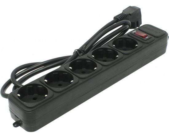 сетевой фильтр на 5 евророзеток, суммарная мощность нагрузки: 2.2 кВт, максимальный ток нагрузки: 10A, кабель 1.8м, чёрный