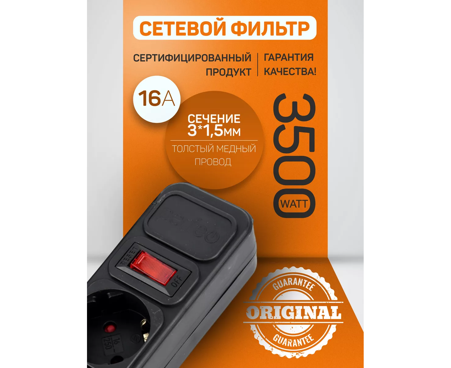 Сетевой фильтр повышенной мощности 3,5кВт и максимальным током 16А. Удлинитель надежно работает без перегревов при предельной нагрузке в 16А при 220В. Представлены различные длины проводов. Pilot имеет кнопку - выключатель, который обеспечивает полное обесточивание сетевого фильтра при необходимости. Сетевой фильтр предназначен для широкого спектра бытовой и электронной техники для дома и дачи, включая чайники , электронагреватели , холодильники , телевизоры , мультиварки , стиральные машины , ноутбук , ПК , компьютер , игровые приставки (Xbox, PS) , телефон , и т.д. (рекомендуется перед приобретением посчитать потребляемую мощность всех подключаемых устройств. Не перегружайте фильтр максимальной нагрузкой. Пилот имеет тройную защиту: встроенный варистор от резкого скачка напряжения, предохранитель от повышенного тока и защита детей в виде шторок, которые не позволят ребенку дотронутся до контактов. Фильтр выполнен с применением медного кабеля "ПВС 3х1.5 мм2" провод соответствует номинальному току до 16А при 220В). Электрическая переноска имеет корпус из литого, негорючего пластика. Электрический шнур и контакты розеток - медные. Количество розеток - 5 шт. с заземлением. Сетевой разветвитель имеет предохранитель для защиты от возникающих в электросети импульсных помех, короткого замыкания и перегрузки. Кнопка выключатель - это сброс предохранителя, который активируется в случае если есть превышения по какой-либо линии защиты (для восстановления работы в случае активации, нужно подождать остывания и нажать на красную кнопку - тройник снова готов к работе).