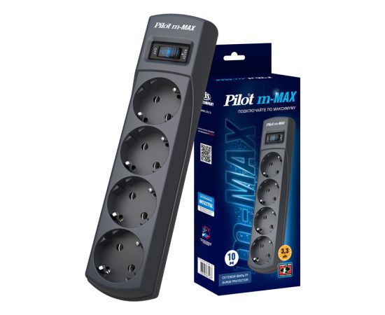 Сетевой фильтр Pilot m-MAX 10м (4 розетки) серый