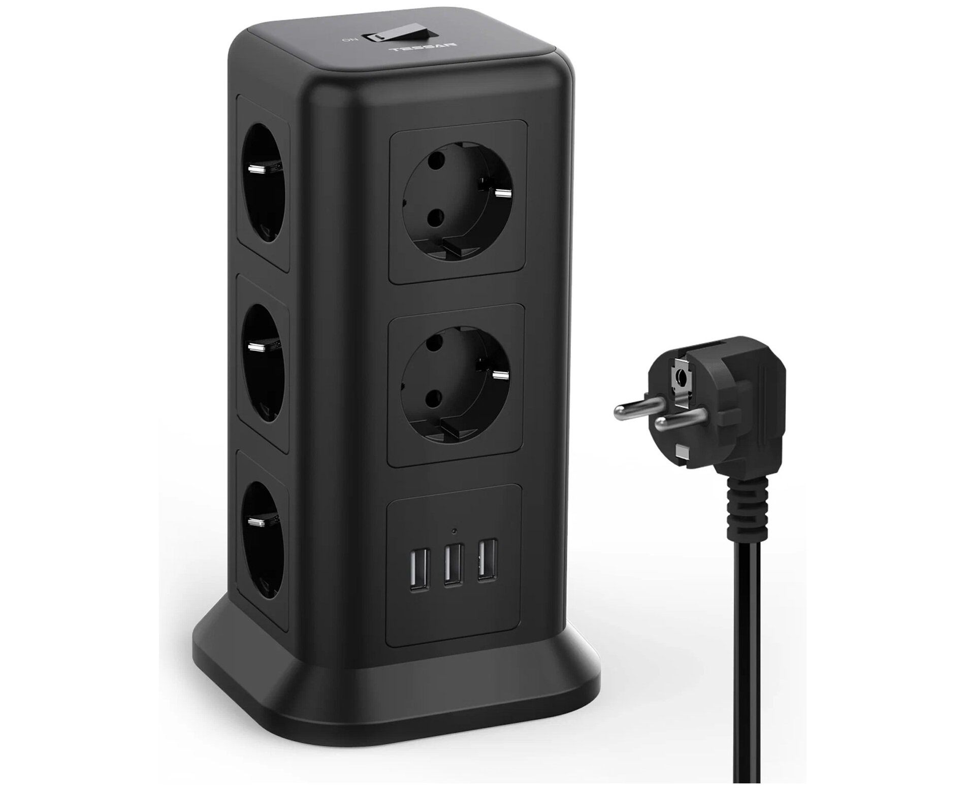Сетевой фильтр TESSAN TPS01-DE (80001849) 11 розеток 220В и 3 USB Black