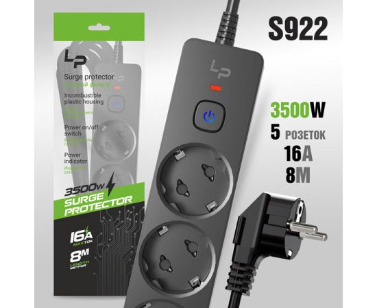 Сетевой фильтр-удлинитель Live-Power LP5150 5розеток С/З 16А с выкл. 8м black