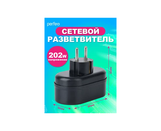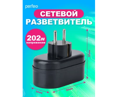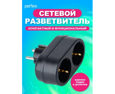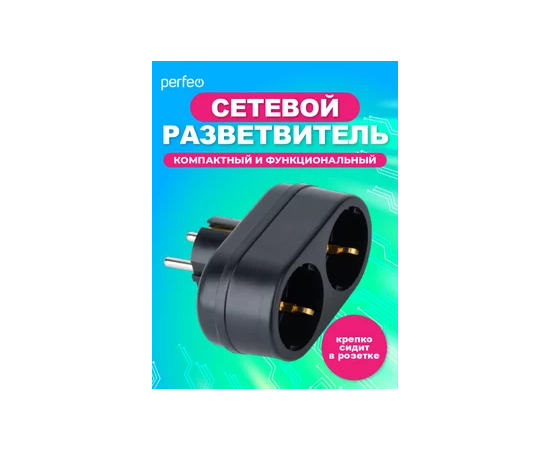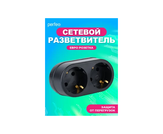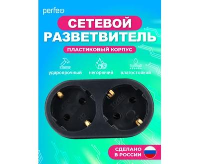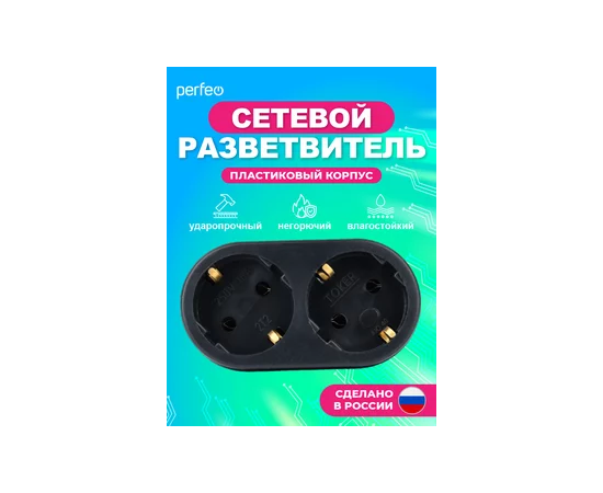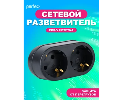 Сетевой разветвитель Perfeo "RU POWER'' 2 гнезда, 16А, с заземлением, (2Т2), черный