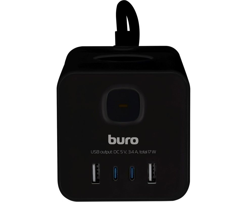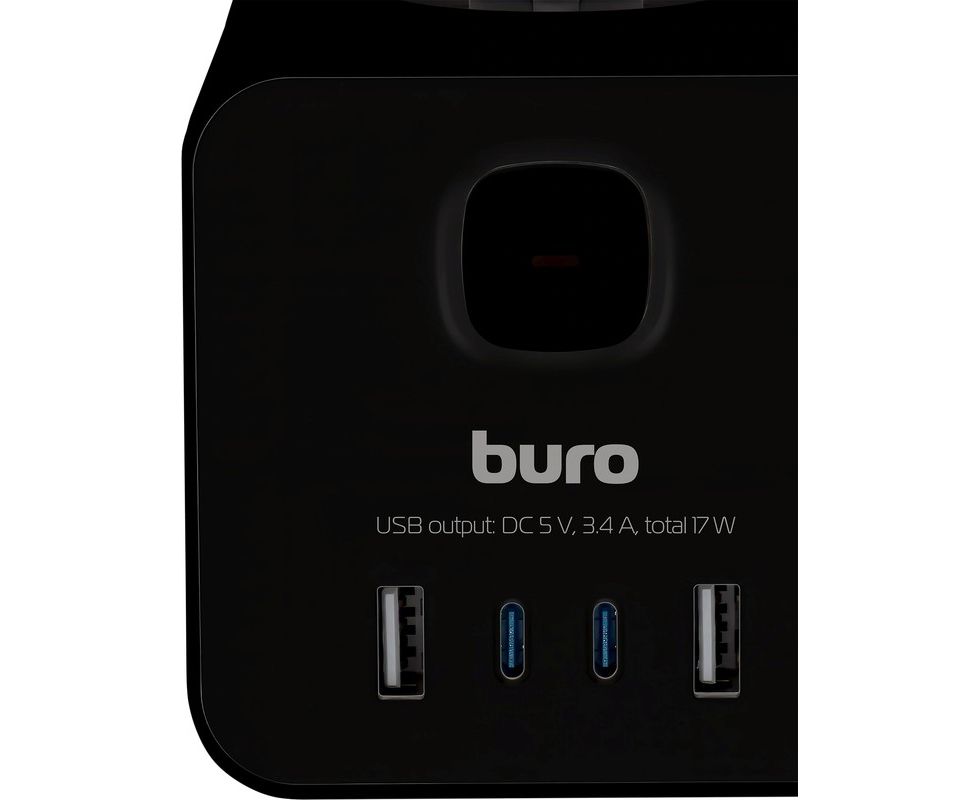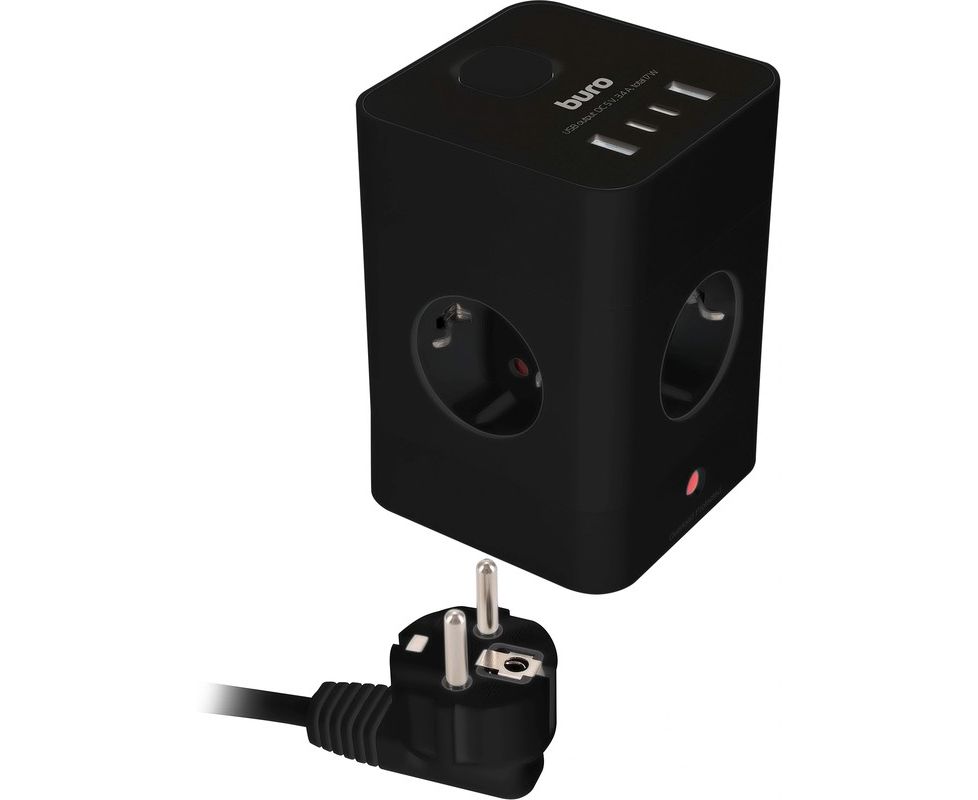 Сетевой удлинитель Buro BU-PTE4.1UC-Plus-B, 1.5м, черный